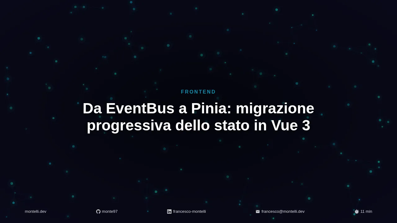 La migrazione da EventBus a Pinia non è solo un cambio di libreria: è il passaggio da un’architettura implicita, dove lo stato vive negli eventi, a una esplicita, dove lo stato ha un posto preciso, ispezionabile e testabile.