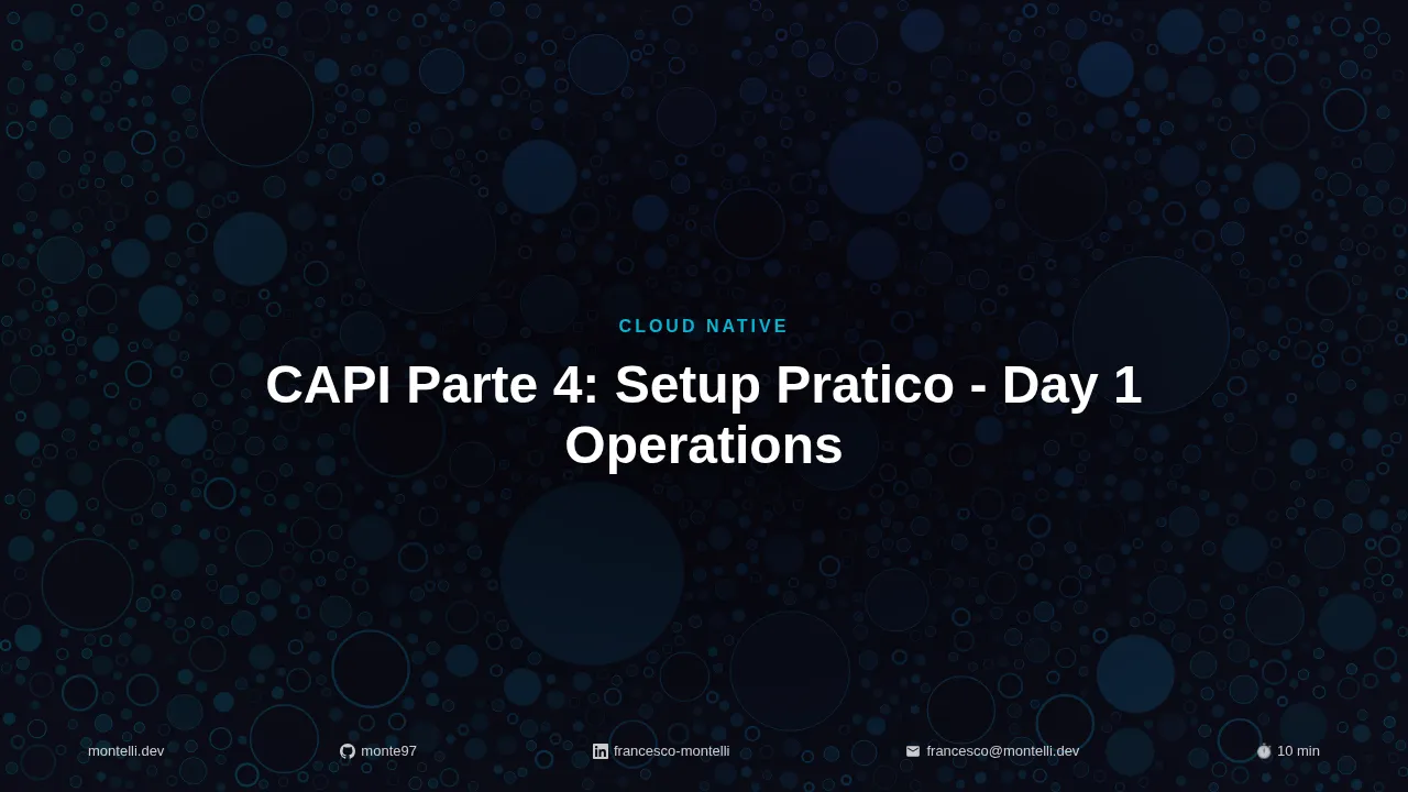 Nelle parti precedenti abbiamo esplorato i fondamenti teorici di Cluster API, l’architettura dei componenti e l’integrazione con Talos Linux. È ora il momento di mettere in pratica questi concetti attraverso un’implementazione completa delle Day 1 Operations.