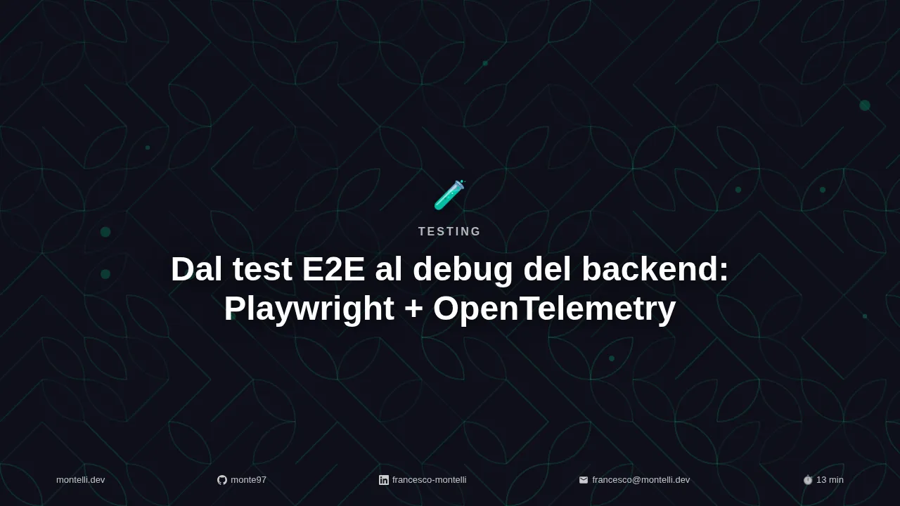 Collegare i test Playwright alle trace OpenTelemetry ci permette di rompere quella black box: quando un test fallisce, apriamo la trace in Grafana e identifichiamo esattamente quale microservizio è il colpevole.